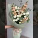 | Состав | Кустовая хризантема Ньютон, персиковая маттиола, эвкалипт Цинерея |