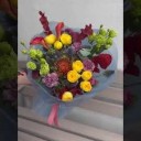 | Состав | Кустовая пионовидная роза, зеленая эустома, леукоспермум, нежно-фиолетовая гвоздика, оранжевая калла, эрингиум, хризантема сантини, стабилизированный красный эвкалипт |