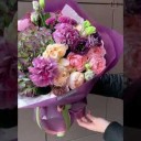 | Состав | Зелено-фиолетовая гортензия, нежно-фиолетовая гвоздика, темно-фиолетовая эустома, фиолетовая хризантема Сантини, кустовая пионовидная роза Джульетта, красная скиммия |
